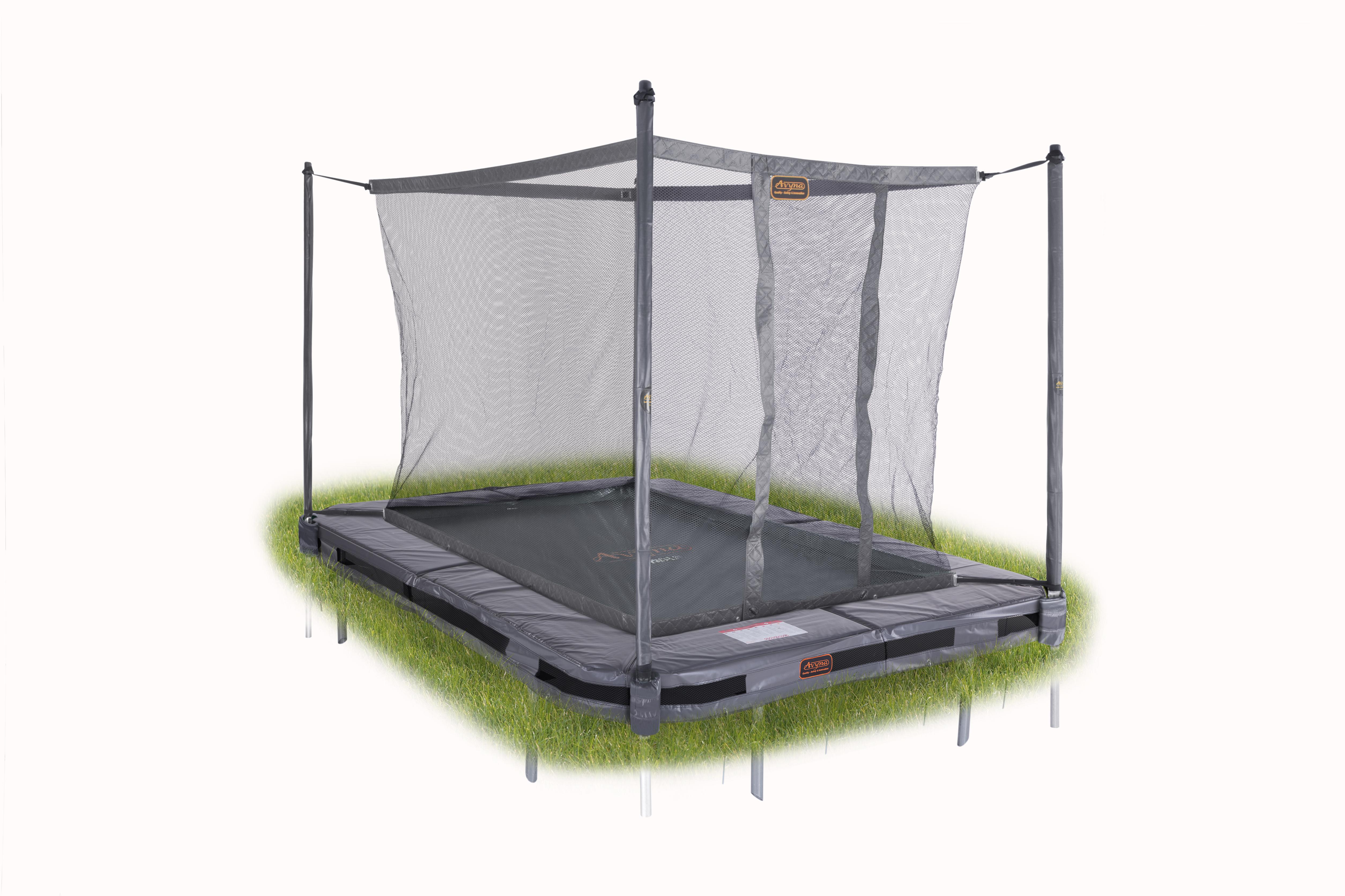 Rechthoekige PRO-LINE mooie antraciet grijze beschermhoes voor de trampoline. Deze afdekhoes is geschikt voor zowel ingraaf als opbouw trampolines.