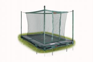 Deze groene ingraaf trampoline is rechthoekig en heeft afmetingen van 215 x 155 cm. De trampoline wordt compleet geleverd met veiligheidsnet. Deze Avyna PRO-LINE In-Ground trampoline is de kleinste rechthoekige InGround trampoline met veiligheidsnet uit ons assortiment.